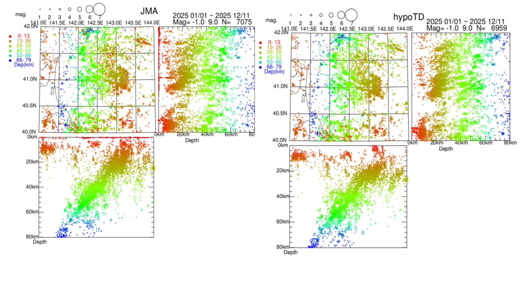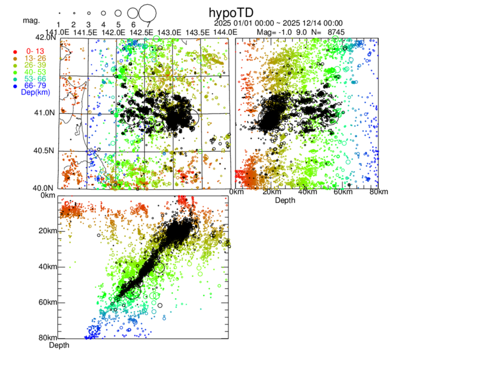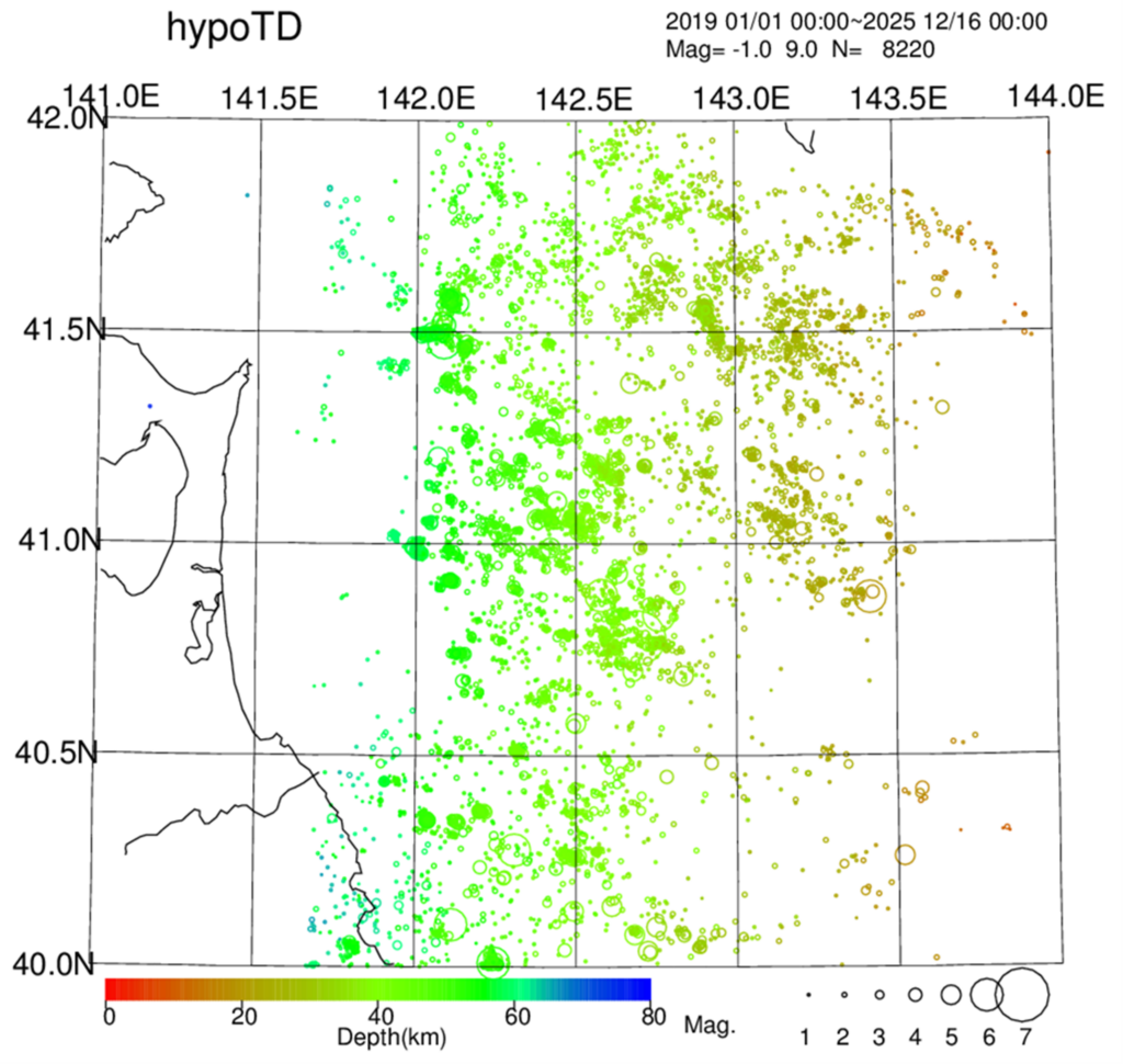 hypoTDによる震源再決定による2025年青森県東方沖地震の地震断層